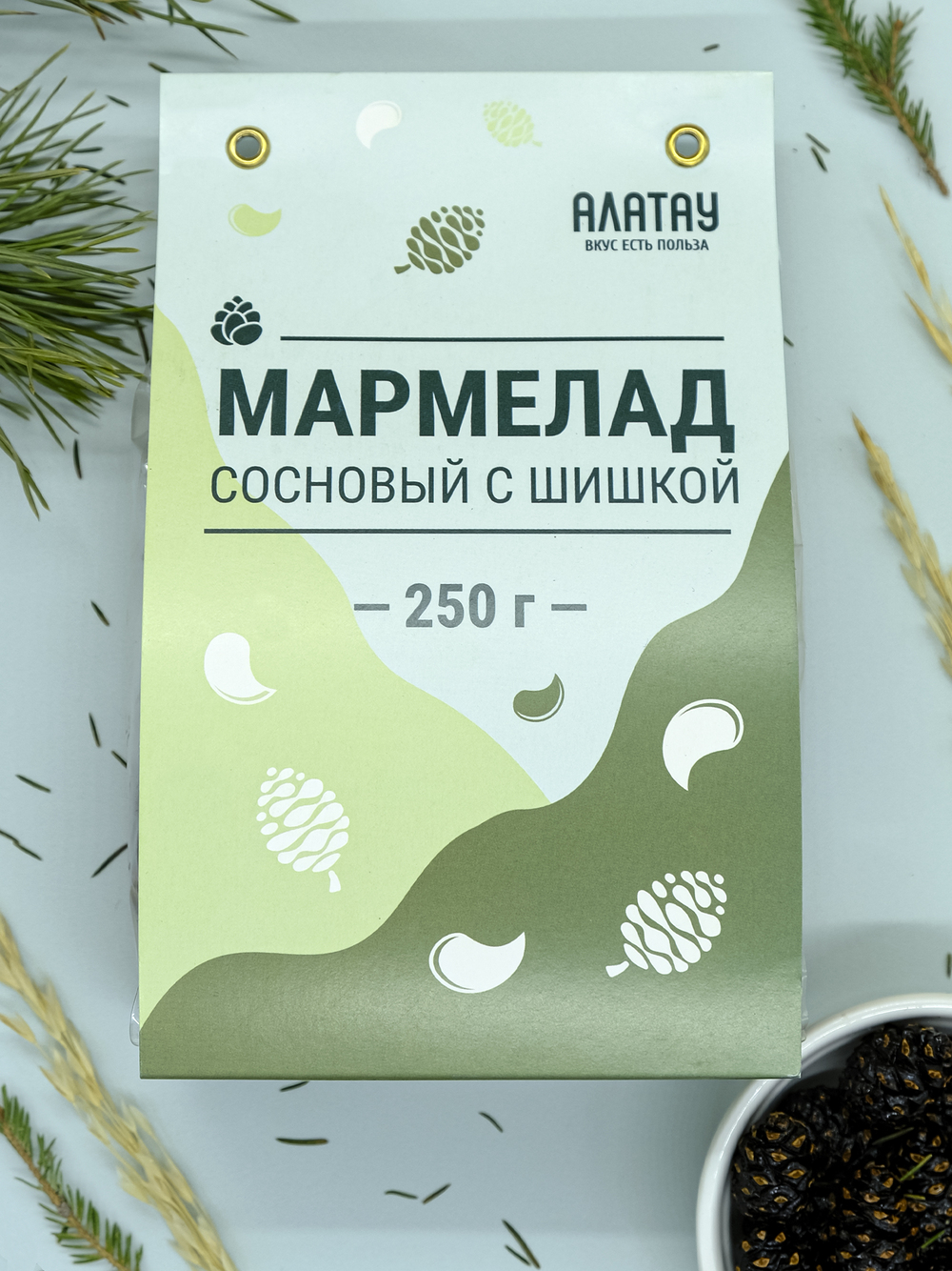 Особенность мармелада – сосновые цукаты. Это молодые сосновые шишки, сваренные в сахарном сиропе. Шишки придают мармеладу яркий вкус и наделяют множеством полезных свойств – противовоспалительным, антимикробным, антиоксидантным. Шишка повышает иммунитет, снимает стресс, улучшает работу мозга.