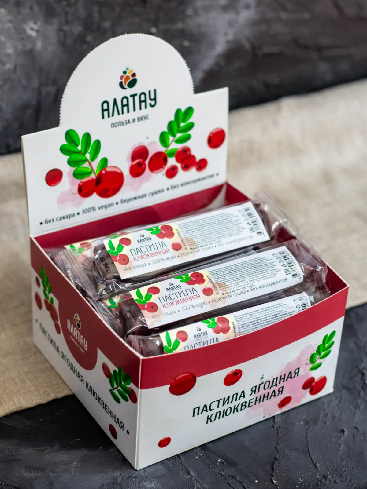 Пастила «Клюквенная» от «Алатау» состоит из яблочного и ягодного пюре.