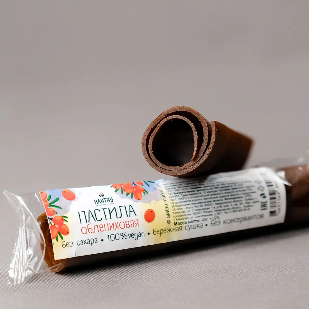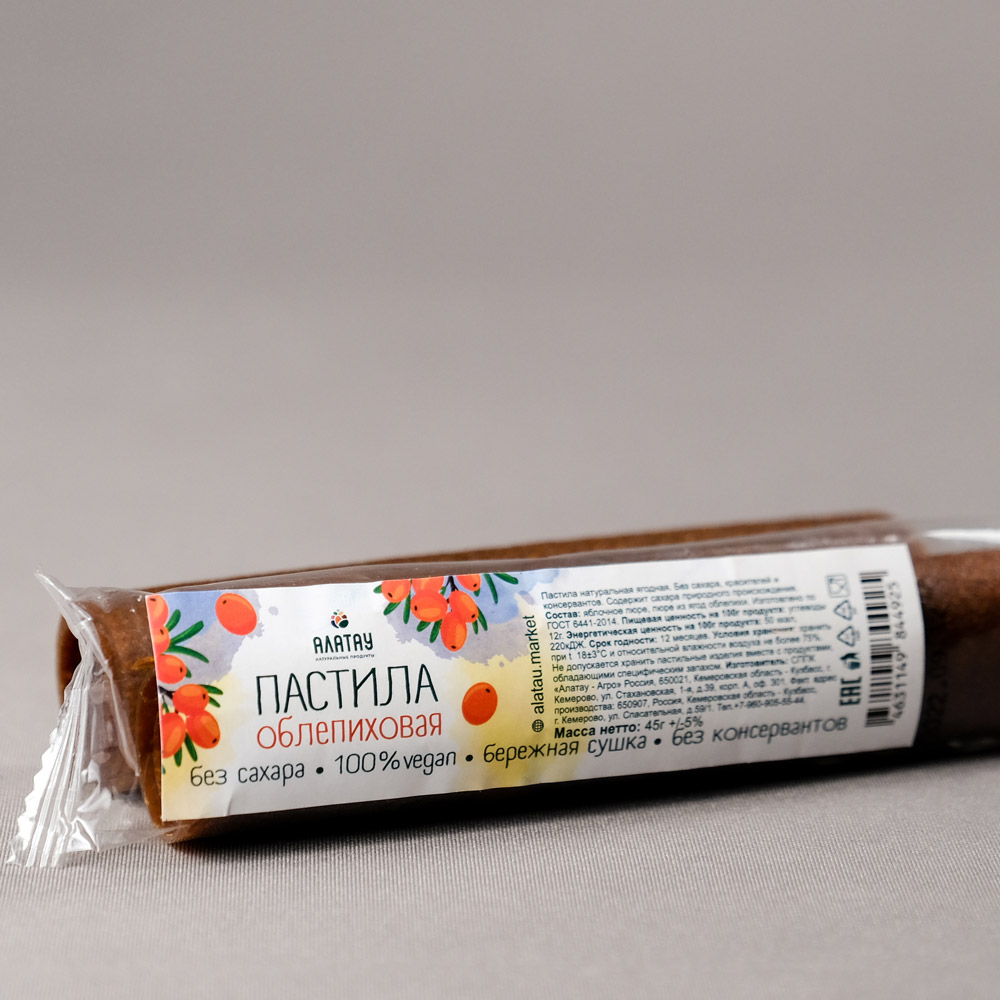 Пастила «Облепиховая» от «Алатау» состоит из яблочного и ягодного пюре.