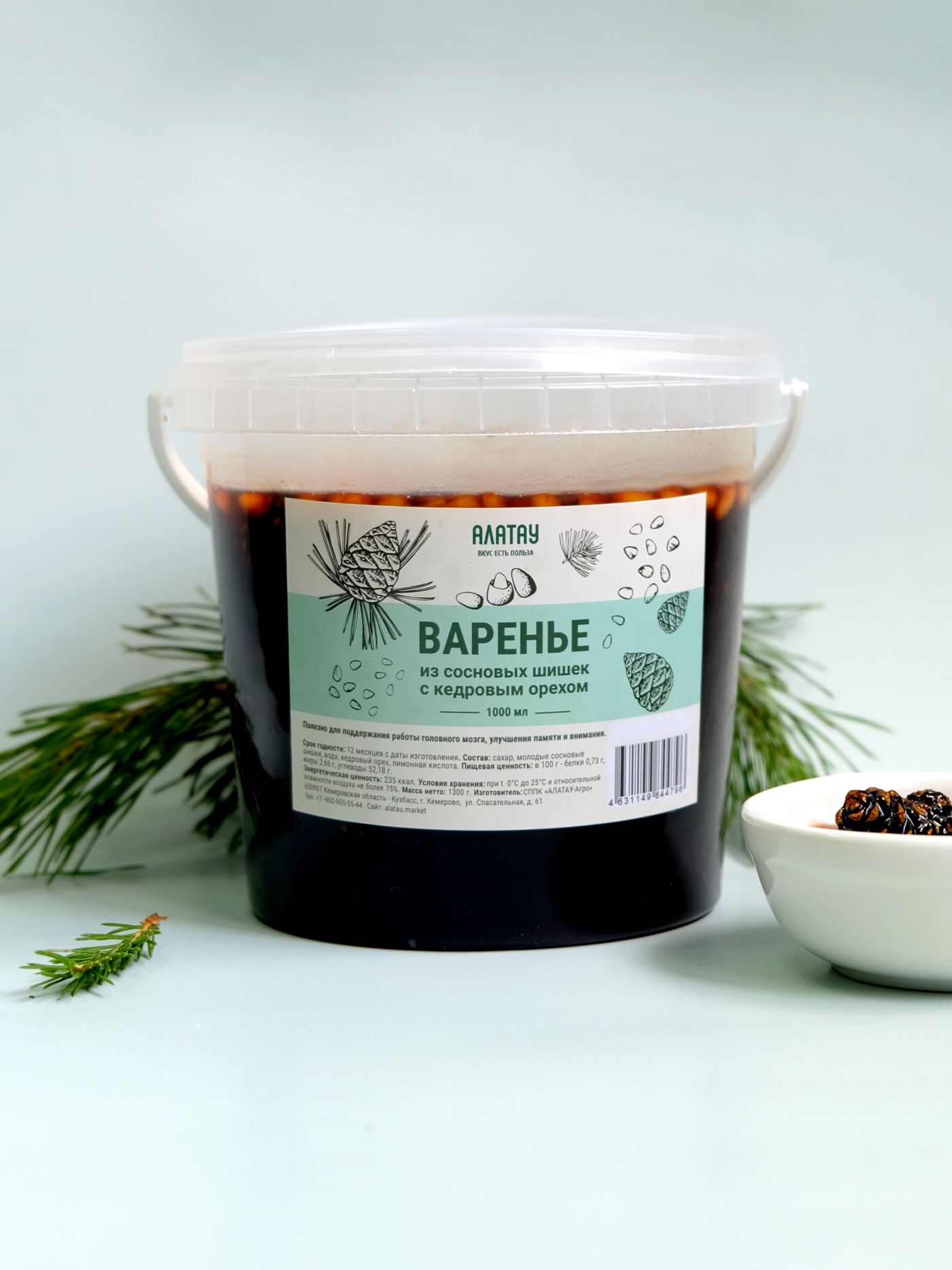 Варенье Алатау из сосновой шишки с кедровым орехом - это самобытный, полностью натуральный десерт из экологически чистых даров сибирской тайги.